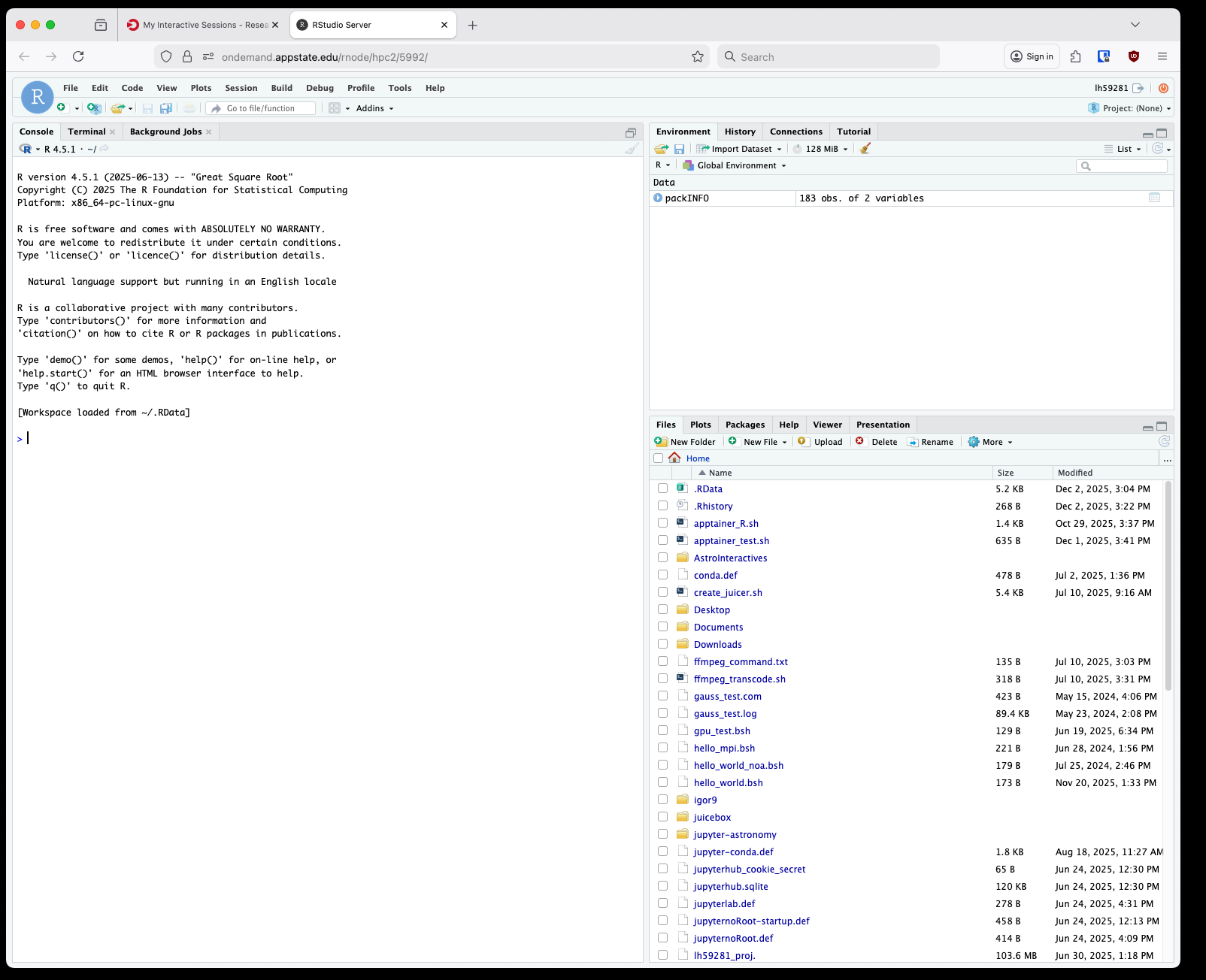 After clicking that a new tab will open with your RStudio session: