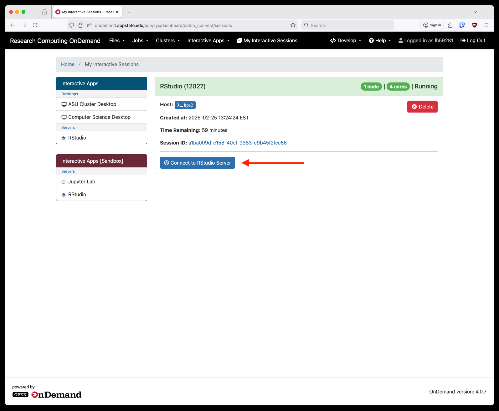 RStudio Open OnDemand Application